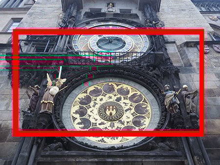 When comparing stills with video filmed from a fixed tripod, it appears the EM5 Mark II makes a small crop to the coverage prior to scaling it down to a 1920×1080 frame. I’ve super-imposed a video grab over a normal photo opposite to illustrate this; the outer edge of the red frame indicates the 1080p video coverage.