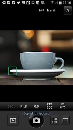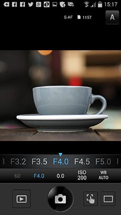 Once connected the app offers four main options: Remote Control, Import Photos, Edit Photo and Add Geotag. I’ll cover each in turn. Tapping Remote Control lets you see a live image from the camera and refocus it by tapping on your phone or tablet’s screen. Impressively you can remotely change the exposure mode between Program, Aperture Priority, Shutter Priority, Manual, iAUTO, ART and movie without touching the camera’s mode dial. Depending on the selected mode, you can then tap to adjust the shutter speed, aperture, exposure compensation, ISO and white balance, along with changing the drive mode, and of course triggering the exposure. If desired you can also dial the shutter speed in Manual all the way to Live Time and if previews are enabled on the camera you can view the peeking during the exposure along with the updated histogram on your handset’s screen.