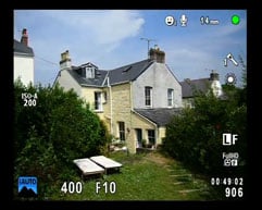 As before, there’s a single function button next to the large raised shutter release and behind and to the left of it, the mode dial extends backwards beyond the edge of the back panel and is operated with your thumb. There’s one new position on the mode dial for creating framed composite images which I’ll talk about in more detail in the shooting modes section.