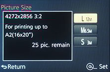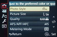 Right, now that’s all out the way, what about the actual quality options? You already know the LX100 can record in four different aspect ratios, selected using a dedicated switch on the lens barrel. Each aspect ratio can be recorded in three different resolutions, with the smaller two being around 6.5 and 3 Megapixels respectively. You can choose to record images with two different JPEG compression levels or as a RAW file; you can also record RAW files with an accompanying JPEG is desired. Note if RAW is enabled, many of the picture enhancement menus are greyed-out.