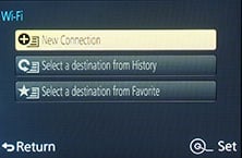 If your phone / tablet doesn’t have NFC you’ll now need to press the Wifi button on the camera (by default assigned to Fn 2 on the back of the LX100) or choose Wifi from the setup menu and either create a new connection, or load one you’ve previously configured. If you’re creating a new connection you can choose from ‘remote shooting and view’, ‘playback on TV’, ‘send images while recording’ or ‘send images stored in the camera’. For a smartphone / tablet connection, you should choose the first option for remote shooting and view. This then sets up the LX100 as a wireless access point, displaying the SSID name and password, alongside them both encoded as a QR graphic. You’ll then need to start the Lumix Image app, select Wifi as your means of connection, select the LX100 network and either enter the password, or simply point your handset’s camera at the QR code.