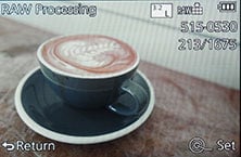 During playback there’s varying levels of exposure detail with each press, culminating in separate RGB and brightness histograms. In a missed opportunity though, Panasonic still resists the chance to auto-rotate images in playback as you turn the camera, so portrait shaped images in playback will never fill the screen. You can however process RAW files in-camera to JPEGs, using a variety of adjustable parameters.