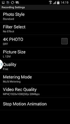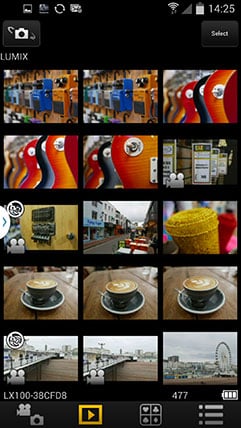 To maintain a responsive experience which feels like the images are stored locally on your phone or tablet, the camera sends a lower resolution version. So you can pinch to zoom-in a little, but not as much as if you were viewing the original. But when you see an image you like, just press and hold it on-screen for a second and the Lumix Image app will let you save the original to your device or start uploading it to one of the social, sharing or storage services installed on your device. You can configure the app to provide shortcuts to two or three of your most used services which could include Dropbox and Instagram in addition to the more usual suspects. Or of course once the image is copied into your device, you could just exit the Panasonic app and handle it direct from whichever sharing or storage app you like via your phone’s gallery.