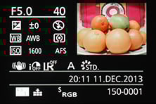 There’s also a broad array of display options when composing on the GM1. You can view a choice of alignment grids or draggable guidelines, a live histogram (also draggable), or a dual-axis leveling gauge. During playback there’s varying levels of exposure detail with each press, culminating in separate RGB and brightness histograms. In a missed opportunity though, Panasonic still resists the chance to auto-rotate images in playback as you turn the camera, so portrait shaped images in playback will never fill the screen.