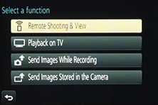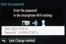 In the absence of NFC, the first step to setting up the GM1’s Wifi is to press the function button atop the camera to either create a new connection, or load one you’ve previously configured. If you’re creating a new connection you can choose from ‘remote shooting and view’, ‘playback on TV’, ‘send images while recording’ or ‘send images stored in the camera’. For a smartphone / tablet connection, you should choose the first option for remote shooting and view. This then sets up the GM1 as a wireless access point, displaying the SSID name and password. You’ll then need to start the Lumix Image app, select Wifi as your means of connection, select the GM1’s network and enter the password.