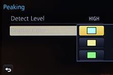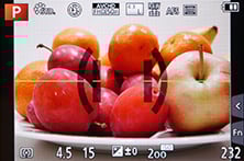 You can also opt for Manual focusing assistance with either a small window in the middle showing an enlarged view at 3x to 6x (again in single or 0.1 step increments), or a full-screen view at 3x to 10x. In a really neat upgrade over its predecessor, not to mention the flagship GH3, the GX7 also offers focus peaking introduced on the G6.