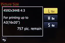 Just briefly mentioning the quality options, the Lumix GX7 lets you record at three different image sizes with the choice of two JPEG compression levels or RAW files recorded with or without a Large Fine JPEG. You can also switch the aspect ratio between 1:1, 4:3, 3:2 and 16:9, although as noted above, all involve cropping the native 4:3 shape with a reduction in resolution and field of view. In my tests, Large Fine JPEGs typically measured around 6-9MB each, while RAW files weighed-in at 19.8MB.