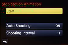 Also inherited from the G6 is a Stop Motion mode, accessed through the main menus rather than the movie options. This can automatically assemble a movie from a sequence of still photos, either taken automatically by the camera at preset intervals, or manually as and when you’re ready. The auto mode is ideal for making time-lapse films, although the manual option allows you to create your own animated movies using drawings or models for example. Once you’ve finished capturing your photos, the camera can then encode them into an MP4 movie at your desired resolution and frame rate, although note it will inherit the original aspect ratio of the photos and won’t crop 4:3 to 16:9, so if you’re wanting a widescreen movie, don’t forget to set the photo aspect ratio to 16:9 first.