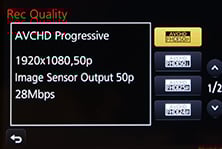 Set the Lumix GX7 to AVCHD encoding and you can choose from 1080 at 60p or 60i for NTSC regions, or 50p or 50i for PAL regions; the progressive options are encoded at 28Mbit/s, while the interlaced ones are at 17Mbit/s. Regardless of region you can alternatively choose a 1080 / 24p option at 24Mbit/s. There’s also a 720 mode at 60p or 50p depending on region and encoded at 17Mbit/s, but the GX7 doesn’t have the G6’s 1080 at 30p or 25p options for AVCHD.