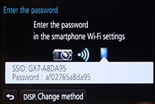 If your phone / tablet doesn’t have NFC you’ll now need to press the Wifi button on the back of the camera and either create a new connection, or load one you’ve previously configured. If you’re creating a new connection you can choose from ‘remote shooting and view’, ‘playback on TV’, ‘send images while recording’ or ‘send images stored in the camera’. For a smartphone / tablet connection, you should choose the first option for remote shooting and view. This then sets up the GX7 as a wireless access point, displaying the SSID name and password. You’ll then need to start the Lumix Image app, select Wifi as your means of connection, select the GX7’s network and enter the password.