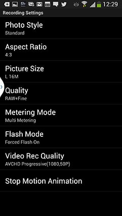 You can also adjust the drive mode, ISO, white balance, exposure compensation or focus area, and there’s also a Q.Menu button which presents a list of additional options you can remotely change including the flash mode, aspect ratio, resolution, compression, metering mode, photo style or movie quality.