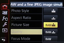 Just briefly mentioning the quality options, the Lumix G6 lets you record at three different image sizes with the choice of two JPEG compression levels or RAW files recorded with or without a Large Fine JPEG. You can also switch the aspect ratio between 1:1, 4:3, 3:2 and 16:9, although as noted above, all involve cropping the native 4:3 shape with a reduction in resolution and field of view. In my tests, Large Fine JPEGs typically measured around 6-9MB each, while RAW files weighed-in at 19.8MB.