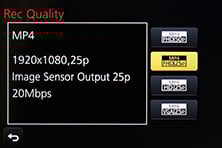 As before you can start and stop recording by pressing the dedicated red button near the shutter release. You can take photos while filming which share the same aspect ratio as the video, and with the choice of two quality options: if you don’t want the stills to interrupt the video, they can only be saved in a small size, but if you prefer a large version, it’ll temporarily blank the recording.