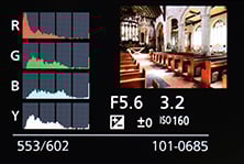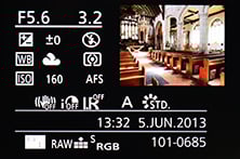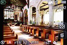 There’s also a broad array of display options when composing on the G6. You can view a choice of alignment grids or draggable guidelines, a live histogram (also draggable), or a dual-axis leveling gauge. During playback there’s varying levels of exposure detail with each press, culminating in separate RGB and brightness histograms. In a missed opportunity though, Panasonic still resists the chance to auto-rotate images in playback as you turn the camera, so portrait shaped images in playback will never fill the screen.