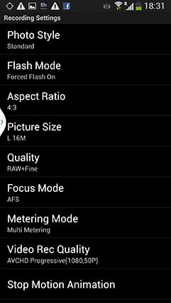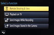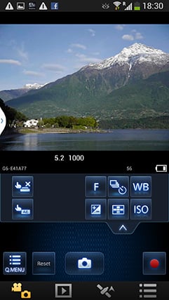You can also adjust the drive mode, white balance, ISO sensitivity, exposure compensation or focus area. There’s also a Q.Menu button which presents a list of additional options you can remotely change including the photo style, flash mode, aspect ratio, resolution, compression, focus mode, metering mode, movie quality or starting a stop motion animation sequence.