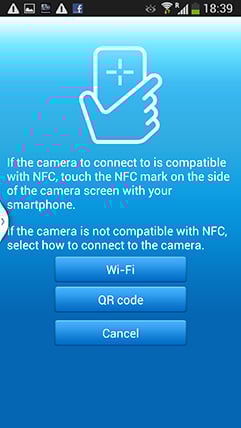 If your phone or tablet has NFC you should start the Lumix Image app then briefly hold the two devices next to each other for about one second. For security, NFC has a very short range, so you’ll need to ensure the NFC chips on both devices are literally right next to each other for the initial negotiation. The location of the NFC chip is clearly marked on the left side of the G6, but it may not be as obvious on your handset. On the NEXUS 7 it’s actually hidden behind the large NEXUS logo on the back, but on the Galaxy S3 and S4 it’s hidden on the rear to one side, but all you need to do is brush the camera’s NFC sensor over the other device and when it finds it, it’ll let you know. A message will appear on both the camera and phone or tablet asking you to tap again to confirm the connection, and that’s it. I found it worked most times, but at others it required a couple of attempts, or a restart of the Image app.