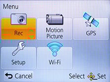 So far so good, but it’s not a 100% consistent experience. If you decide tapping and dragging is for you, you’ll be disappointed to find it not extending to all areas of the TZ40 / ZS30’s operation. For example, the super-imposed Q.Menu remains entirely operated by buttons, and once you’ve tapped into the main menu system, you’ll also need to use the buttons to scroll through and select the options.