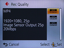 Panasonic quotes both the AVCHD and MP4 modes as being restricted to clips with a maximum length of 29 minutes and 59 seconds. Finally, Panasonic recommends using an SD card rated at Class 4 or faster for recording movies.