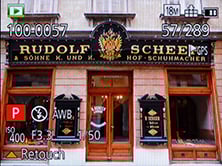 During playback, the DISP button cycles between a clean view and three other views with either GPS landmark details from the built-in database, detailed shooting information, or in a welcome upgrade over its predecessor actual GPS co-ordinates. If the histogram has been enabled in the menus, you’ll also see it during playback.