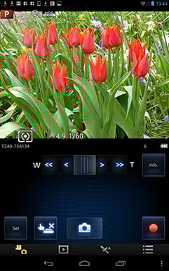 Once your phone or tablet becomes connected to the TZ40 / ZS30, you can remote control it, browse the images direct from the memory card, copy them onto the handset and if desired send them onto various storage or sharing services. You can even have the camera automatically send images to your phone, tablet or computer as you take them.