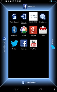 To maintain a responsive experience which feels like the images are stored locally on your phone or tablet, the camera sends a lower resolution version. So you can pinch to zoom-in a little, but not as much as if you were viewing the original. But when you see an image you like, just press and hold it on-screen for a second and the Lumix Image app will let you save the original to your device or start uploading it to one of the social, sharing or storage services installed on your device. You can configure the app to provide shortcuts to two or three of your most used services which could include Dropbox and Instagram in addition to the more usual suspects. Or of course once the image is copied into your device, you could just exit the Panasonic app and handle it direct from whichever sharing or storage app you like.