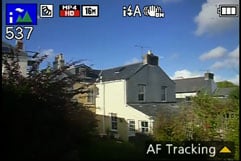 The TS20 / FT20’s zoom operates at a slower speed during movie mode and is virtually silent, but you can just make out a faint buzz on the mono audio track. You can’t shoot still images during movie recording, but you can display a 16:9 overlay on the screen so you can frame up a movie shot before pressing the record button. Otherwise you’ll get taken a little off guard when the screen switches to 16:9 mode with black bars top and bottom. The only problem with the 16:9 frame is it’s a little heavy, faint lines would have done the job, but instead there’s a dark frame overlay that almost obscures the background, making it very difficult to frame up 4:3 still shots. So this is something you’d only be likely to use immediately prior to movie shooting, you wouldn’t want to leave it on all the time. Given that, it would make a lot more sense for this to be added to the display overlays that you can toggle through using the Display button, rather than on the Setup menu.